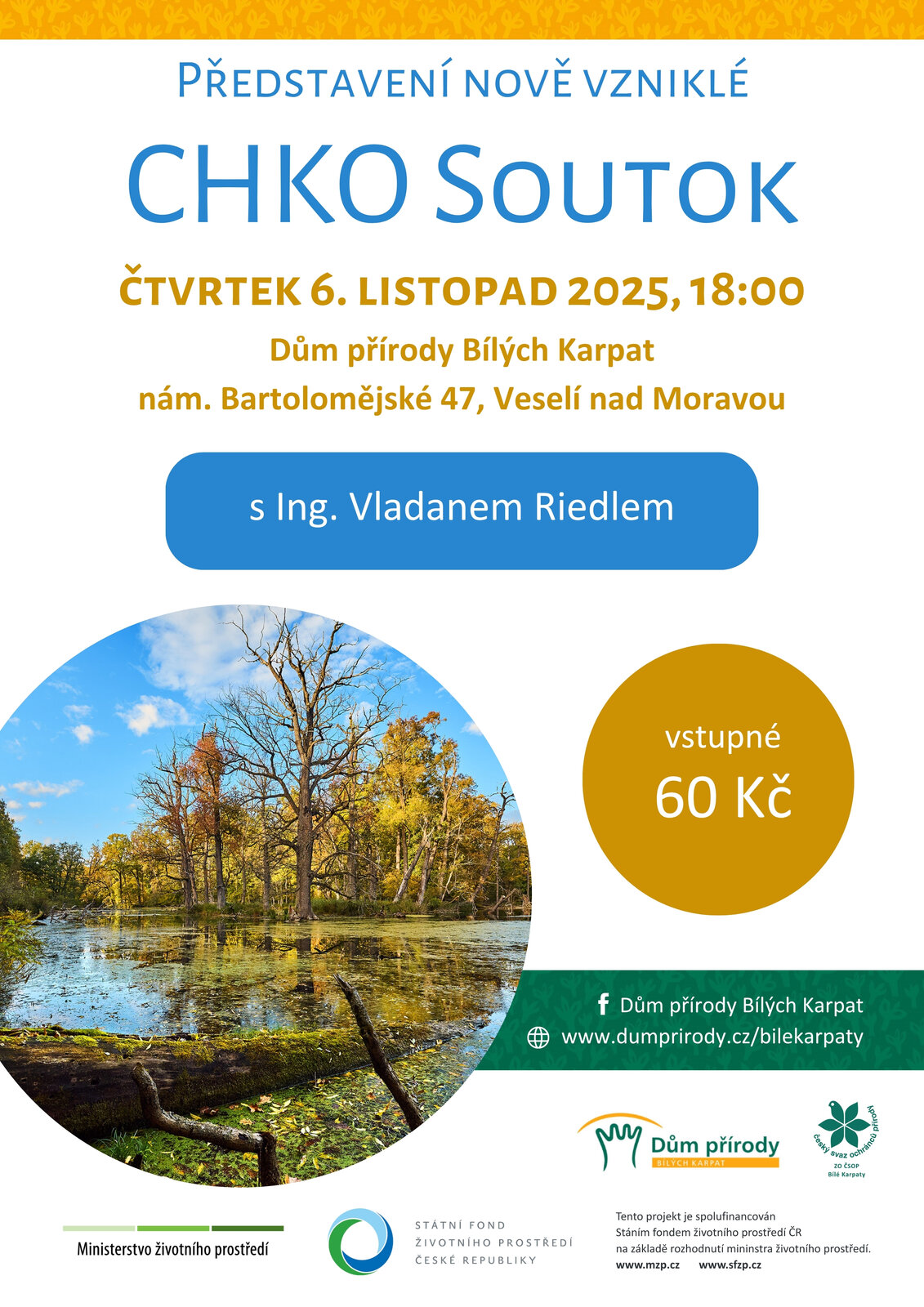 Zveme vás ve čtvrtek 6. listopadu na povídání o nově vzniklé chráněné krajinné oblasti Soutok, která byla vyhlášena 1. července 2025. Vstupné: 60 Kč.