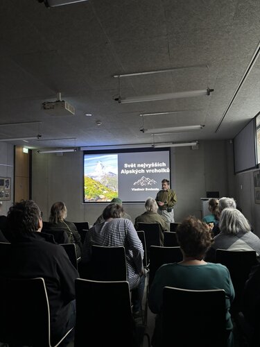 Ve středu 12. listopadu 2025 se v Domě přírody Českého krasu uskutečnila přednáška Vladimíra Svobody o nejvyšších alpských vrcholcích, doplněná autorskými fotografiemi z výstupů na dvacet alpských čtyřtisícovek.
