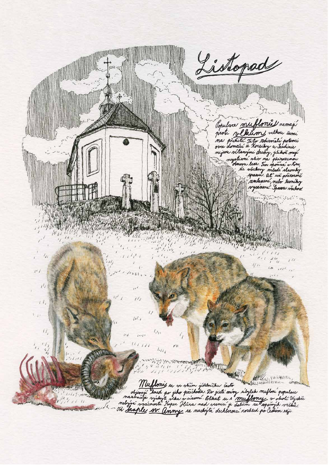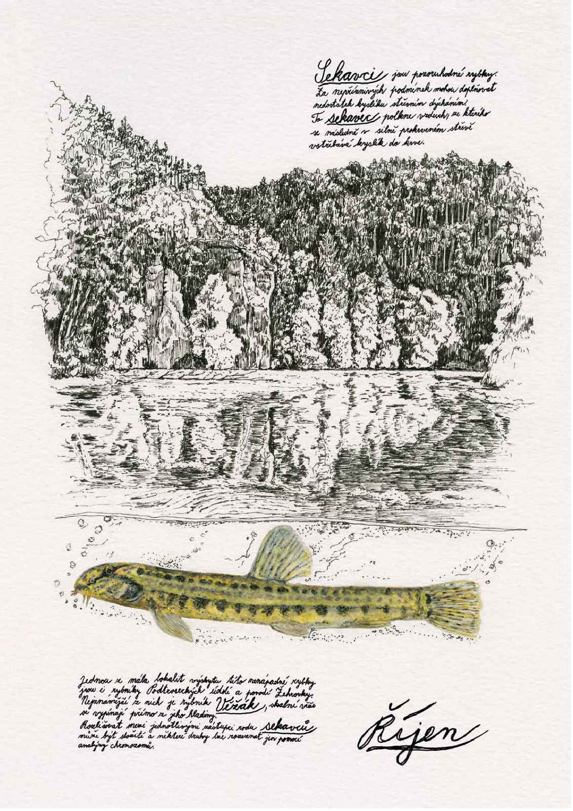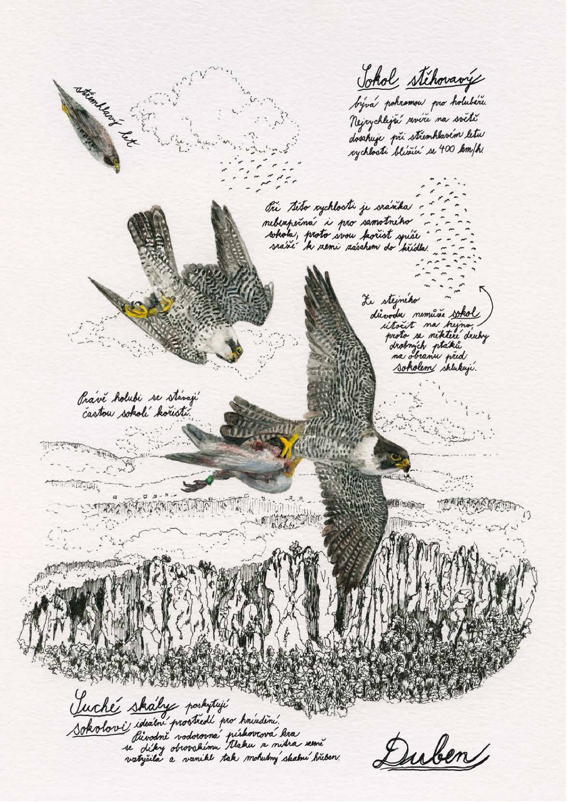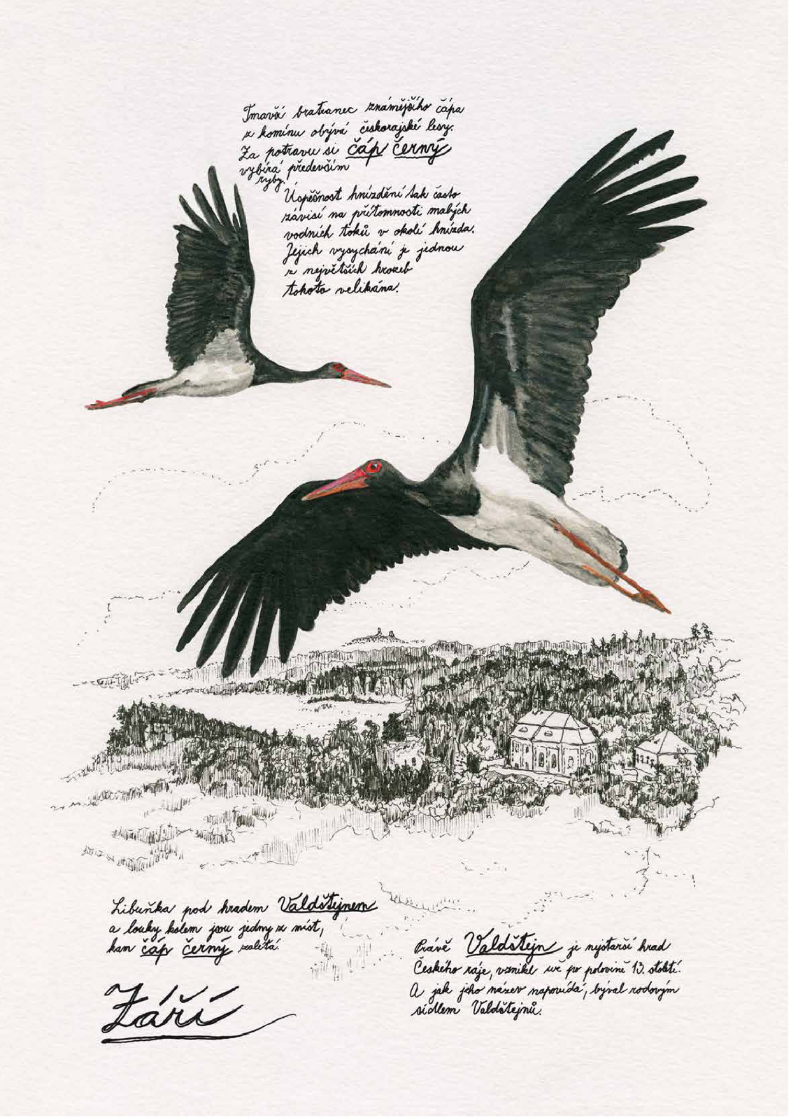 Na dvanácti stranách Kalendáře pokladů Českého ráje se s pomocí autorských kreseb a ručně psaného textu seznámíte s druhy, které jsou v Českém ráji doma a také s dominantami krajiny Českého ráje. V Prachovských skalách se v lednu setkáte s výrem velkým, v květnu na Mužském zase s otakárkem fenyklovým, pod hradem Valečov vás v srpnu čeká setkání ještěrkou obecnou.