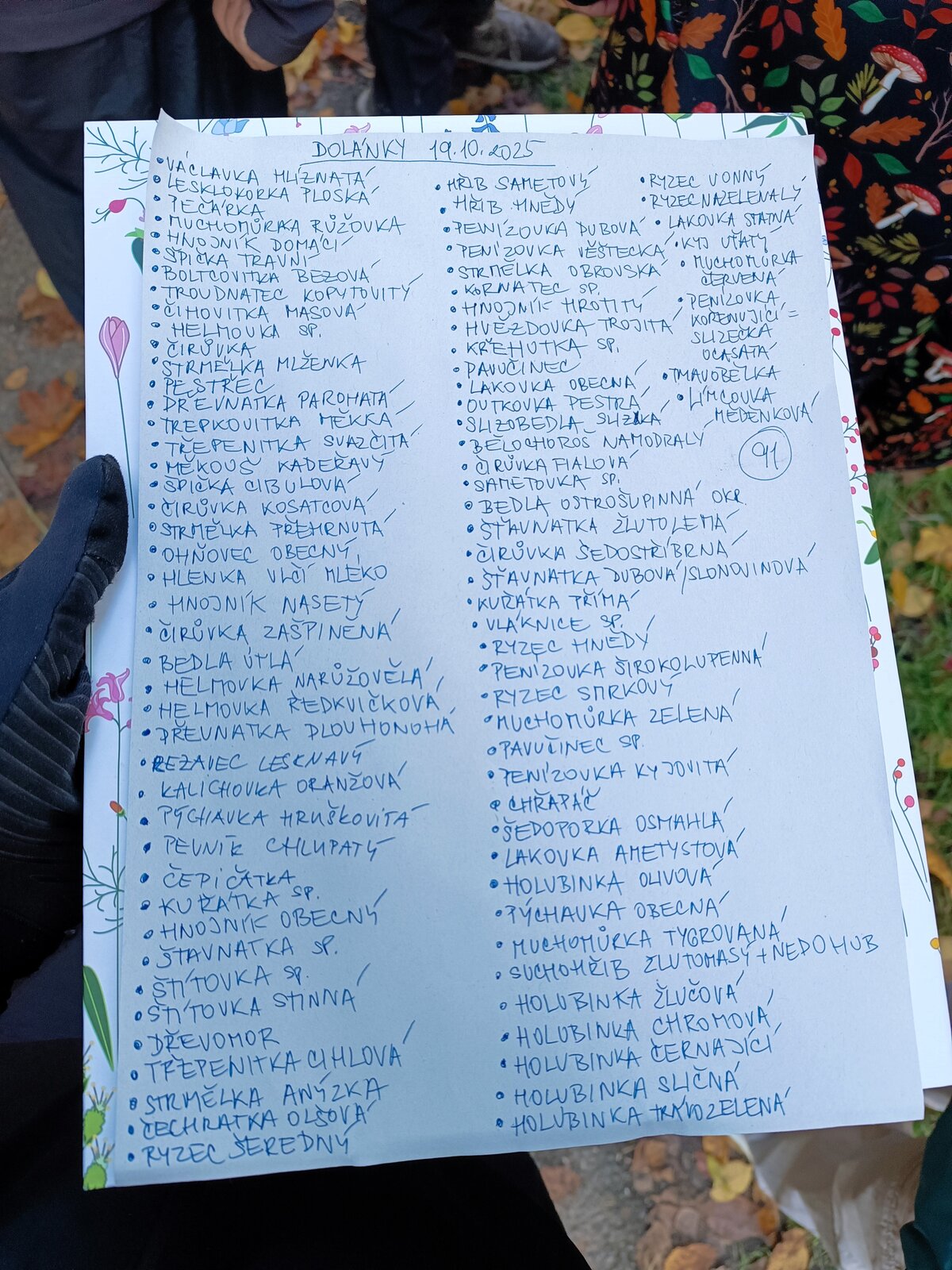 V mrazivé avšak slunečné nedělní ráno 19. října se sešlo na čtyři desítky fanoušků hub před Domem přírody Českého ráje, aby vedeni Janou Čapkovou z Houbařského spolku Lomnice n. Popelkou vyrazili prozkoumat svět hub. Přes počáteční obavy kvůli mrazivé noci se nám nakonec společnými silami podařilo objevit a pojmenovat 91 druhů hub za pouhé tři hodiny v terénu.