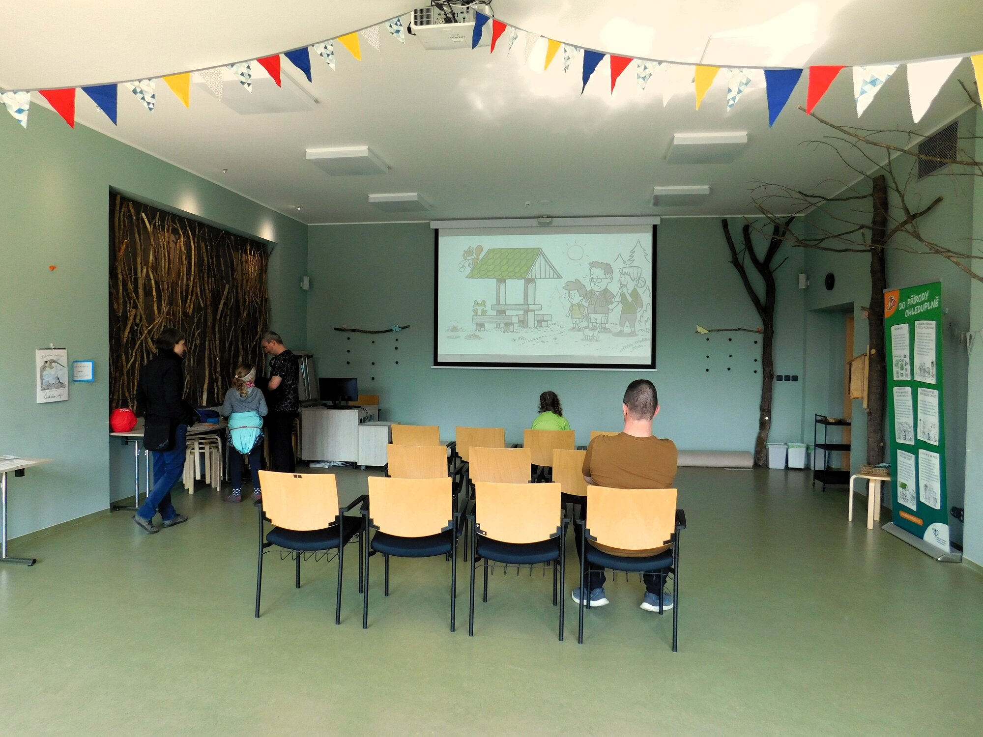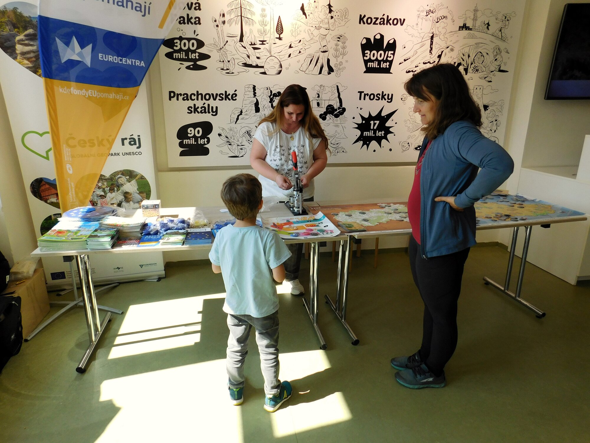 Po celý den bylo možné prohlédnout si zdarma stálou expozici Sokolí svět v podkroví budovy, která představuje jednotlivé fenomény Českého ráje, ať už jde o pískovcová skalní města, četné rybníky, druhově bohaté louky anebo pozůstatky historického osídlení. První patro budovy obsadila rodina Veverkových, která návštěvníkům pomocí hravých stanovišť připomněla, jak se chovat v přírodě. V přízemí budovy byl připraven stánek Eurocentra Liberec, který návštěvníkům nabídl tipy na výlety po Libereckém kraji, a sezónní výstava Soužití s velkými Šelmami zapůjčená od Hnutí Duha. Otevřen byl také obchůdek s kavárničkou, kde je možné zakoupit nejen regionální produkty, upomínkové předměty a výukové materiály, ale také lahodnou kávu z Křižanské pražírny, kterou si mohou návštěvníci vypít na předzahrádce, a že počasí slunění konečně přálo!