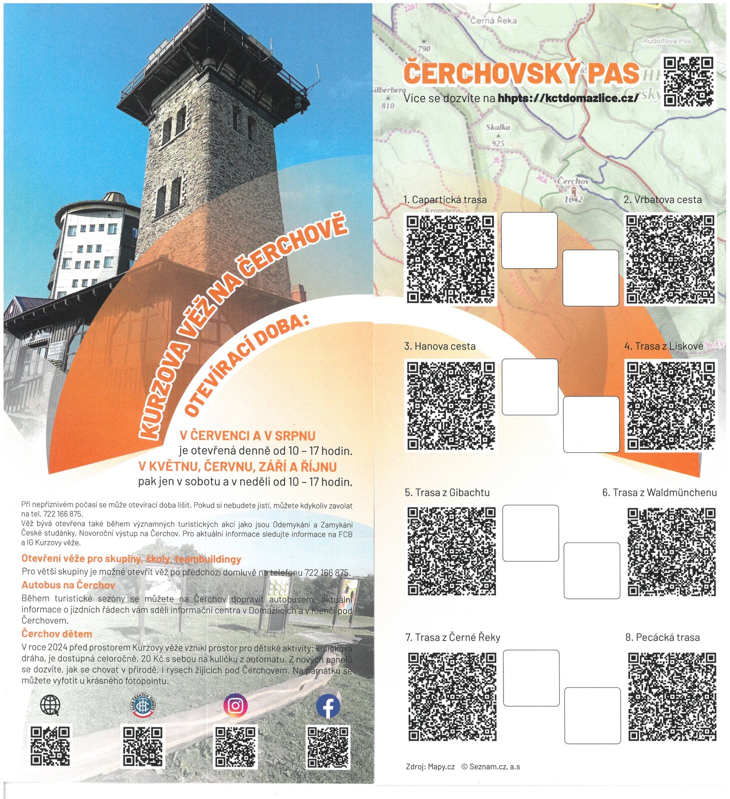S Čerchovským pasem, který obdržíte v Domě přírody Českého lesa/infocentru v Klenčí pod Čerchovem, objevíte nové cesty na Čerchov a můžete také získat zajímavou odměnu.Více se dozvíte na https://kct.cz/klub-turistu-pripravil-cerchovsky-pas-provede-zajemce-osmi-puvabnymi-trasami/