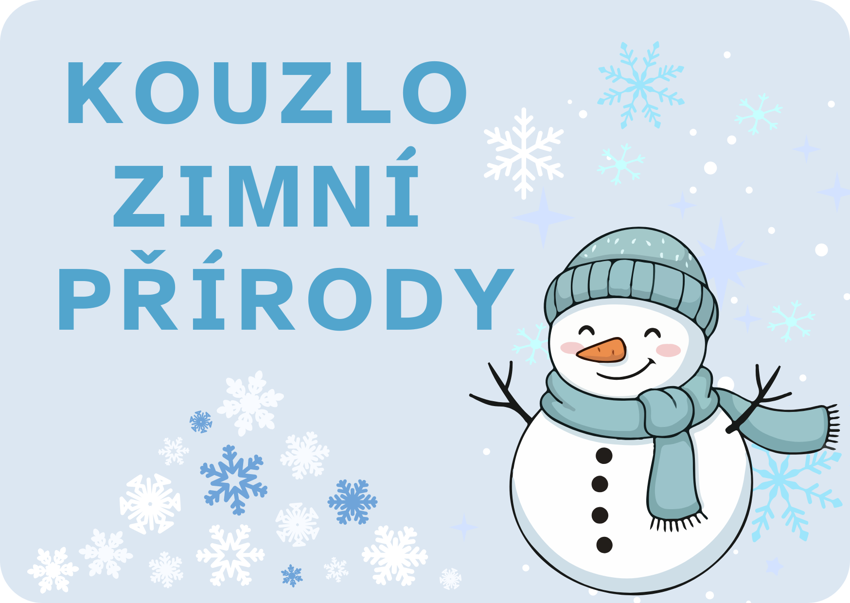 Vydejte se s námi do zasněžené zimní krajiny. Čeká vás tvoření se sněhovými vločkami, návštěva ptáčků na krmítku i veselé stavění sněhuláků. Pro děti budou připraveny originální výrobky a hravé úkoly plné zimních radovánek. Přijďte si užít radost z tvoření, poznávání i zimních her!