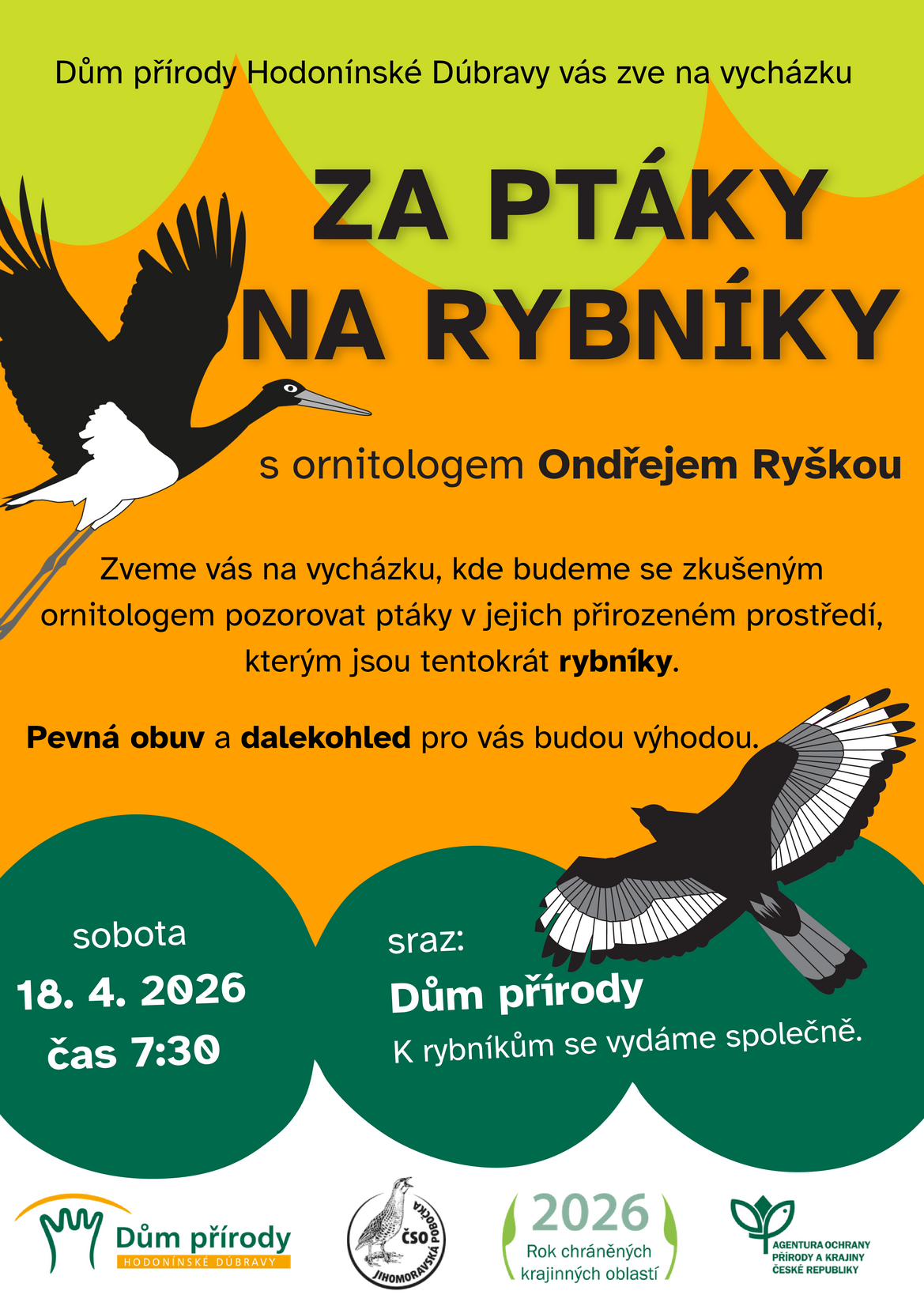 Procházkou nás provede zkušený ornitolog Ondřej Ryška.