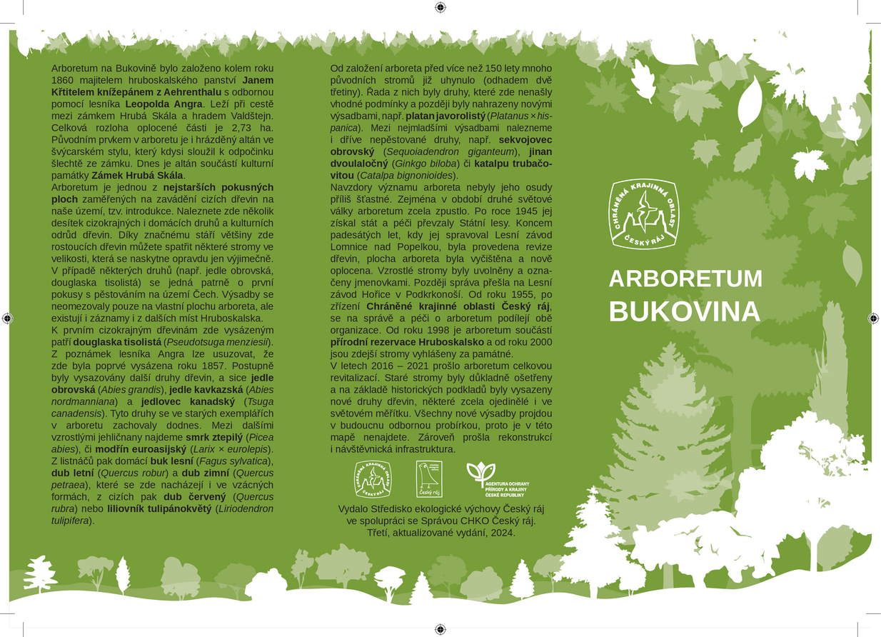 Informační leták o Arboretu Bukovina s mapkou nejzajímavějších dřevin