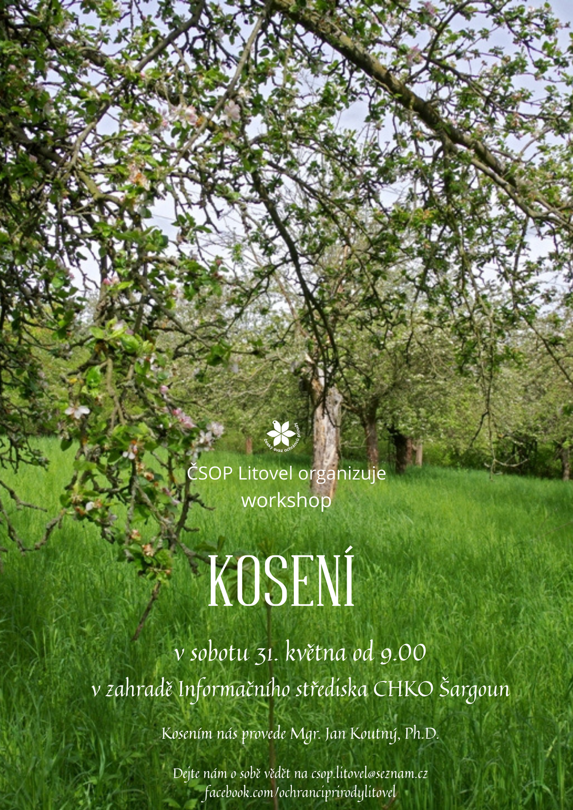 V sobotu od 9.00 se budeme učit umění kosáků. K dispozici je nám kvetoucí loučka ve starém ovocném sadu v areálu Informačního střediska CHKO LP - Šargoun. Doneste si svou kosu, brousek, příp. hrábě, nebo Vám nářadí půjčíme k vyzkoušení, pokud nemáte. Správnou techniku kosení a broušení se nám pokusí vštípit Mgr. Jan Koutný, Ph.D., kosák tělem i duší. Občerstvení zajištěno, vstup zdarma.