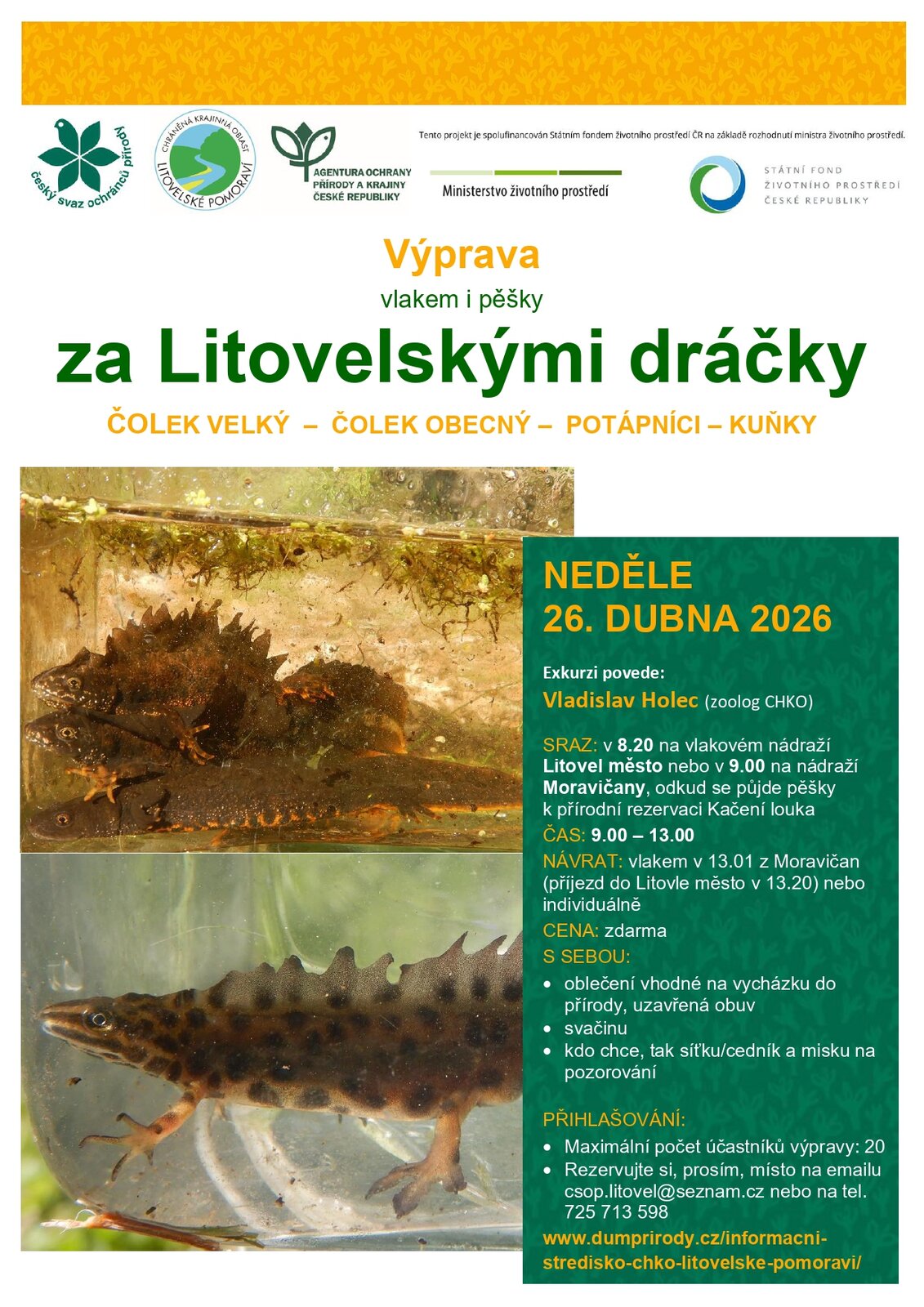 Kdo z nás je kdy naposled viděl? Jestli vůbec někdy...Vydejte se s námi na výpravu za čolky. Příští neděli, odchod od Moravičanského nádraží nebo s námi vlakem už z Litovle.