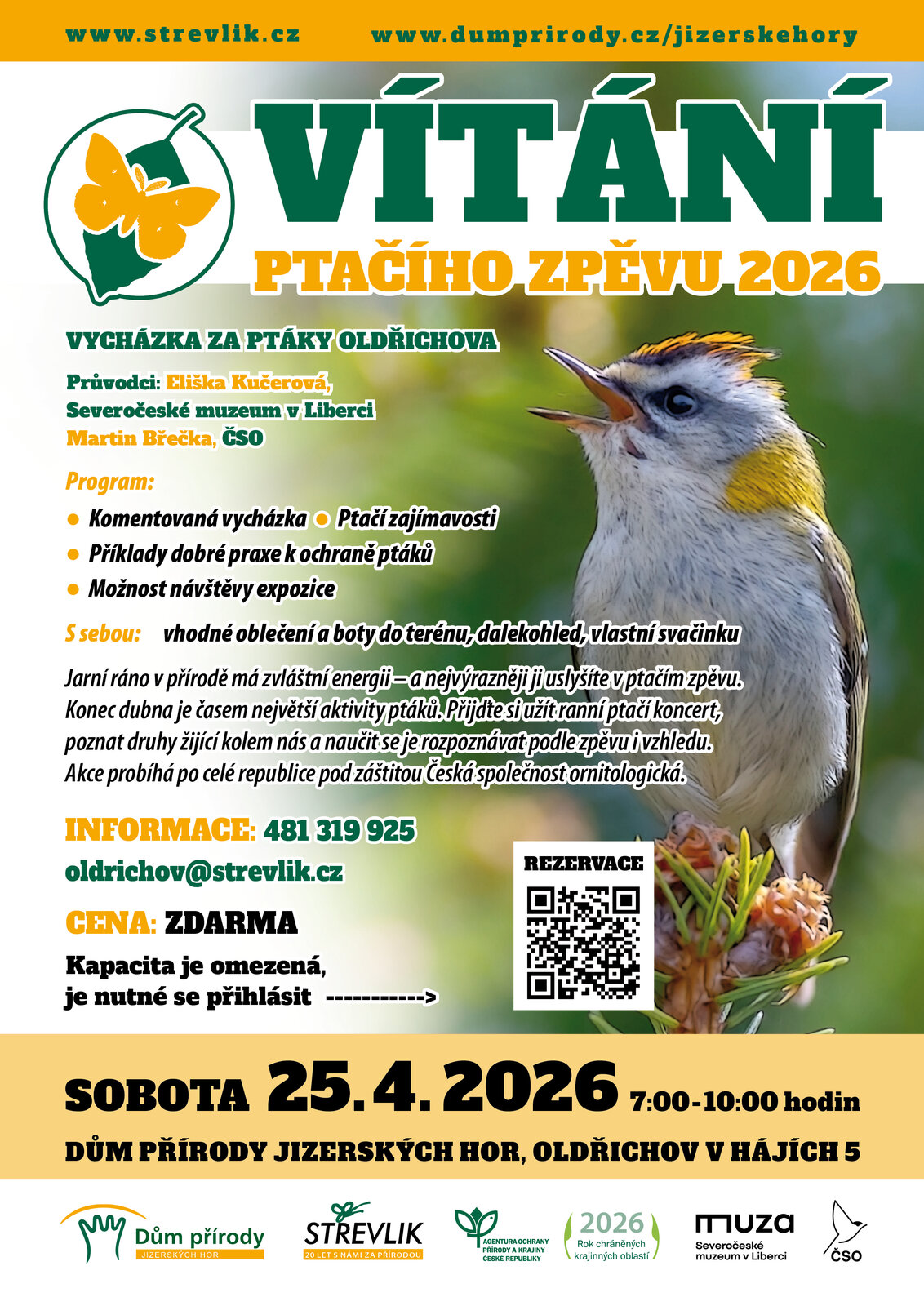 VÍTÁNÍ PTAČÍHO ZPĚVU 2026 - Vycházka za ptáky Oldřichova