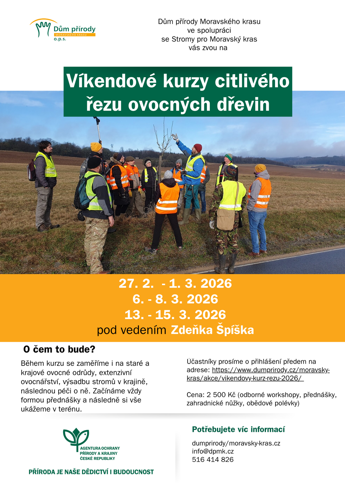 Během kurzu se zaměříme i na staré a krajové ovocné odrůdy, extenzivní ovocnářství, výsadba stromů v krajině, následnou péči o ně a probereme v hodné nářadí. Začínáme vždy formou přednášky a následně si vše ukážeme v terénu. Každý účastník bude mít v ruce nůžky a naučí se základy výchovného řezu.
