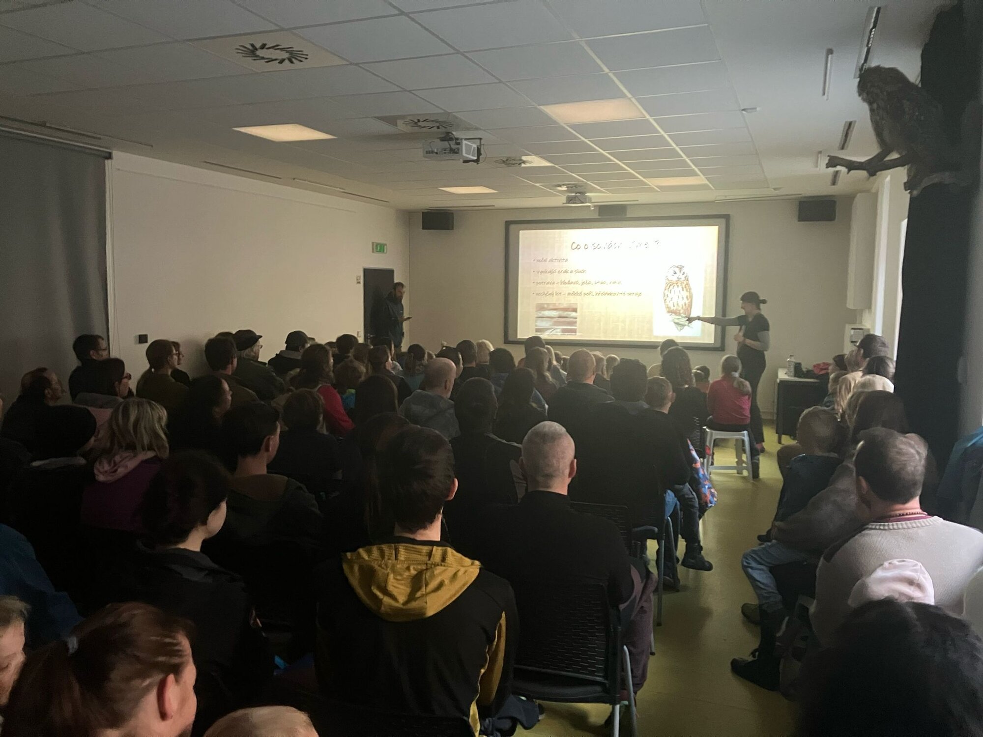 O akci byl mimořádný zájem. Do kinosálu dorazilo téměř 100 návštěvníků, přestože jeho běžná kapacita je zhruba poloviční. Organizátoři proto rychle přidali další židle, plastové stoličky a pro děti připravili sedací vaky. Ani to však nestačilo a část účastníků sledovala přednášku ve stoje. Velký zájem ale zároveň potvrdil, že téma sov přitahuje širokou veřejnost všech věkových kategorií.