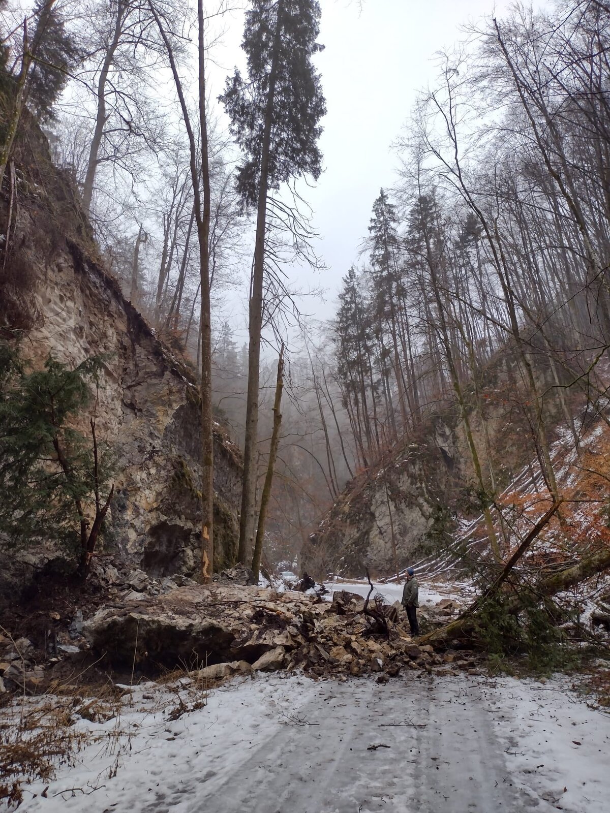 Cestu mezi Macochou a Punkevními jeskyněmi zavalila skála