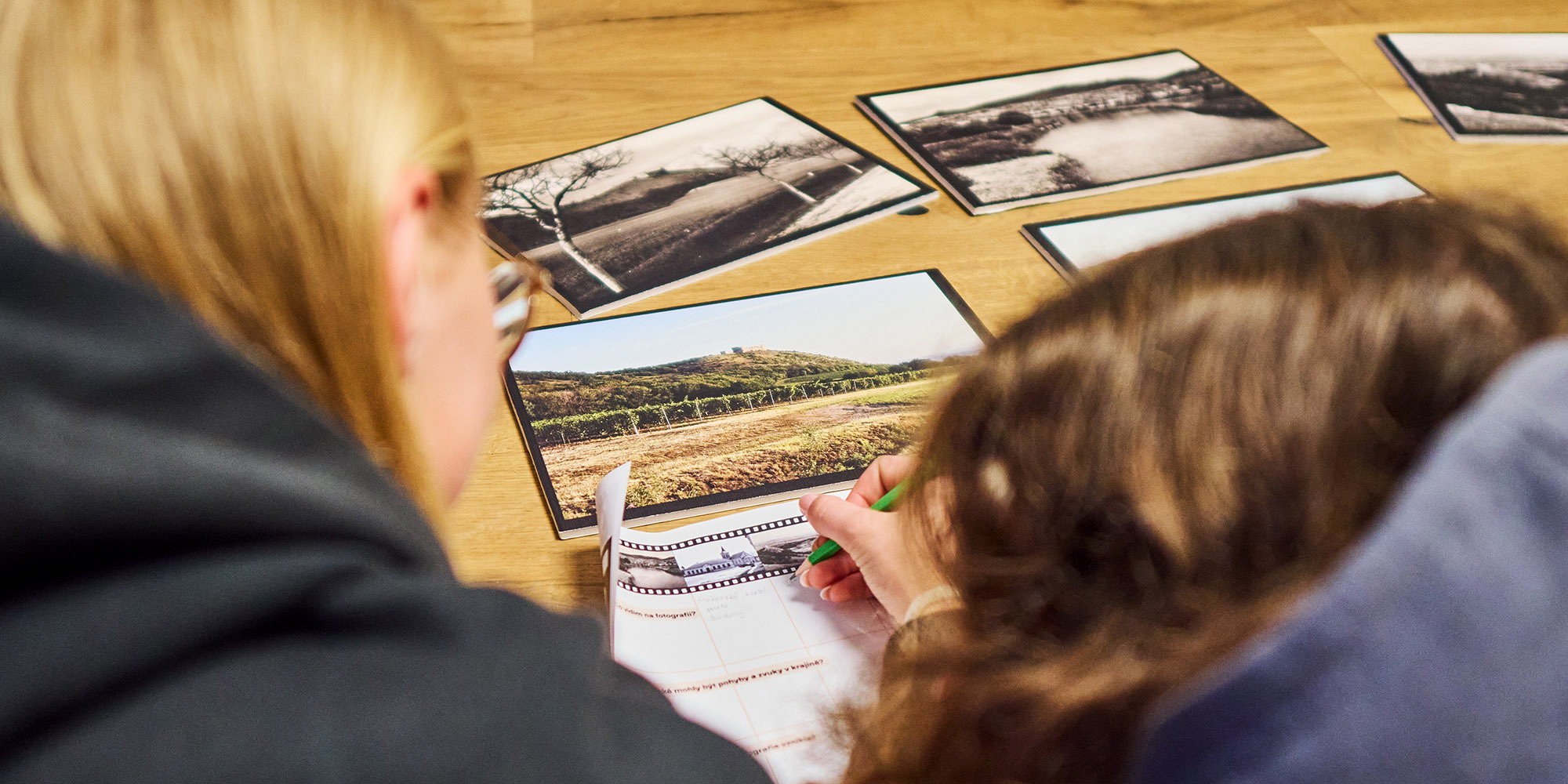 Co nám přináší srovnávací fotografie při studiu krajiny? Dá se z nich vyčíst vliv člověka na krajinu a přírodu? Žáci ve skupinách pracují s historickými fotkami - jak formou badatelskou, kdy popíšou jevy, které na fotce vidí, tak formou interpretační, kdy zkusí vytvořit potenciální situaci vytvoření fotografie nebo zachytit pohyb a zvuky fotografií. V následující fázi srovnají historické a současné fotografie a zjistí především krajinné změny. Na závěr si volnou interpretací zkusí zachytit krajinu za sto let.
