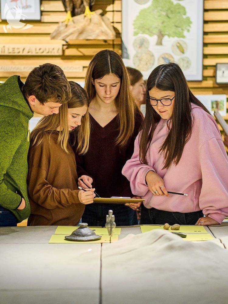 Jedno stanoviště ukrývalo třeba stoličku z mamuta nebo zub jeskynního medvěda. Stejně jako u různých předmětů z expozice tady žáci určovali, o co se jedná. Největším oříškem se ukázalo puzzle z historických leteckých snímků Pálavy, které se žádnému týmu nepodařilo poskládat celé v časovém limitu.