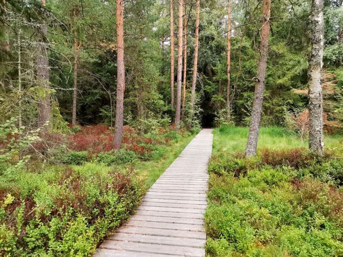 Rozsáhlé rašeliniště linoucí se směrem k Malému Dářku je možné obhlédnout ze silničky. Pak se vnořte do lesa na stezku označenou zelenobílou značkou. Kočárek a ani kolo po této stezce neprojede. Po stezce narazíte na 12 informačních tabulí. Dojedete na vyhlídku na bývalou těžební jámu. Potom budete pokračovat lesní cestičkou, chvílemi podél kanálu, ktery vede do Velkého Dářka. Potom pujdete přes louku na cestu lemovanou břízami směrem z Radostína a půjdete až do lesa. Pokračujte po 'hlavní' stezce jakoby kolem Dářka, až narazíte na povalový chodník. Ten Vás zavede k srdci Dářských rašelinišť uprostřed blatkového boru. Vrstva rašeliny zde dosahuje až 9m do hloubky. Na konci ovalového chodníku je poslední tabule. Pak se vrátíte po cestě zpet do Radostína, nebo můžete pokračovat asi 2 km na hráz Velkého Dářka